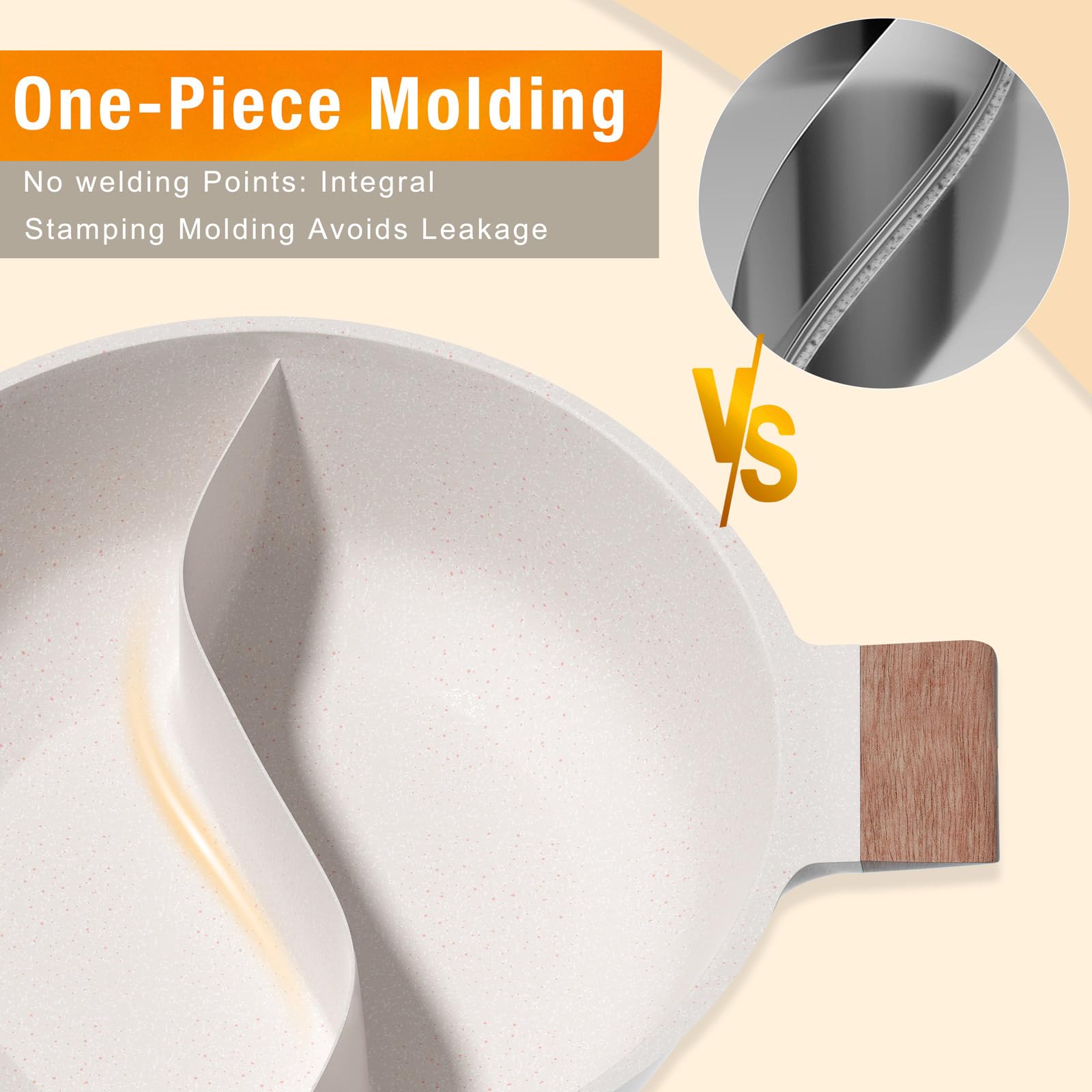 DEZIN Olla Shabu 5 QT – Hot Pot de 12" con Doble Sabor y Separador, Antiadherente por Ambos Lados, Compatible con Inducción, Gas y Quemador | Con Cucharón